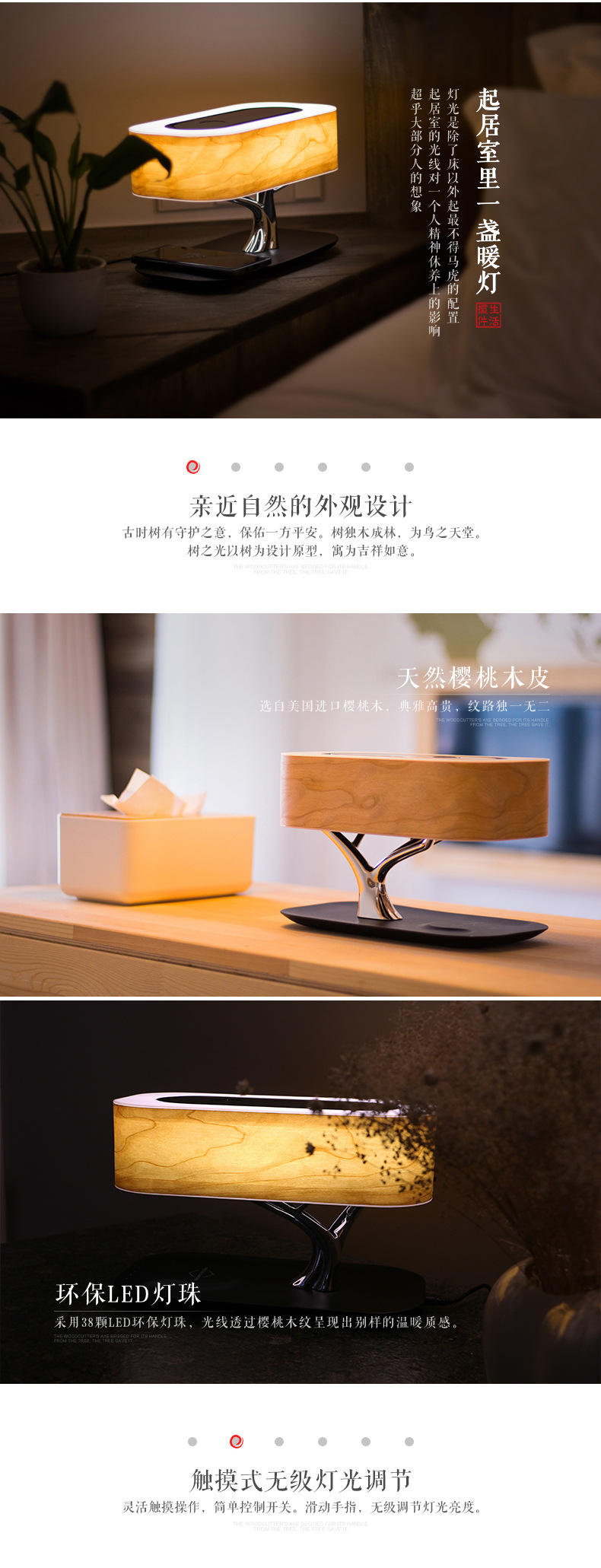 商品名称:树之光 艺术之作 多功能无线充音乐台灯 触控无极调光 春节礼品推荐