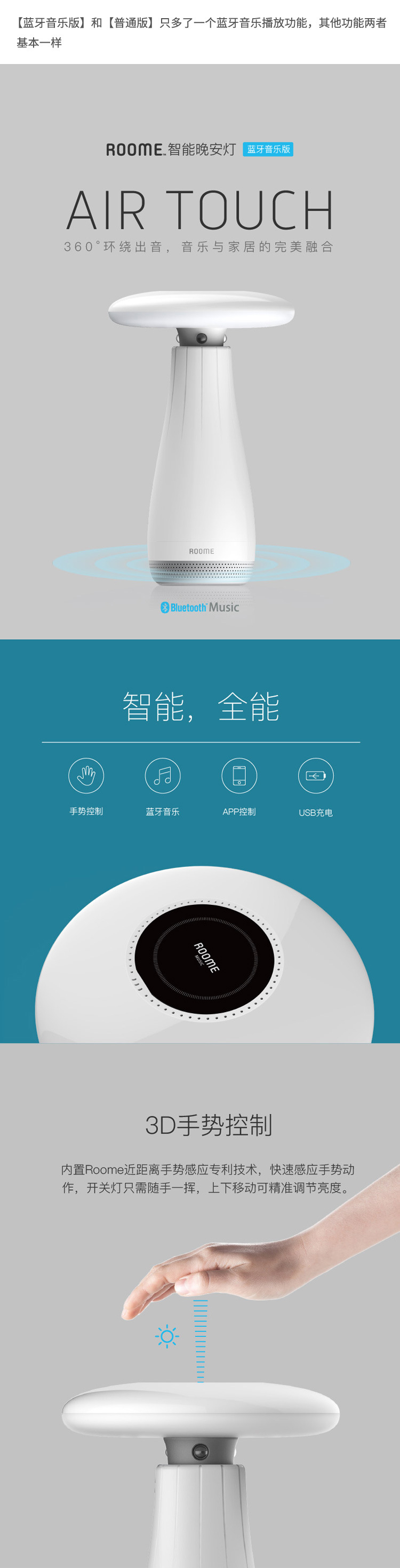 商品名称:ROOME Air Touch 手势控制智能蓝牙音乐台灯 越用越聪明床头灯 触控感应 年会活动小奖品