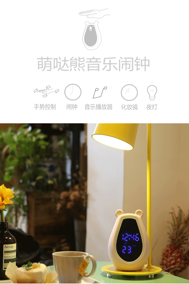 商品名称:创意时尚闹钟蓝牙音响 化妆镜补光灯 送女性礼品 时尚礼品