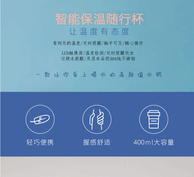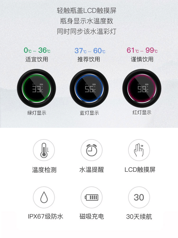 商品名称:不锈钢温度显示提醒喝水智能保温杯 活动奖品