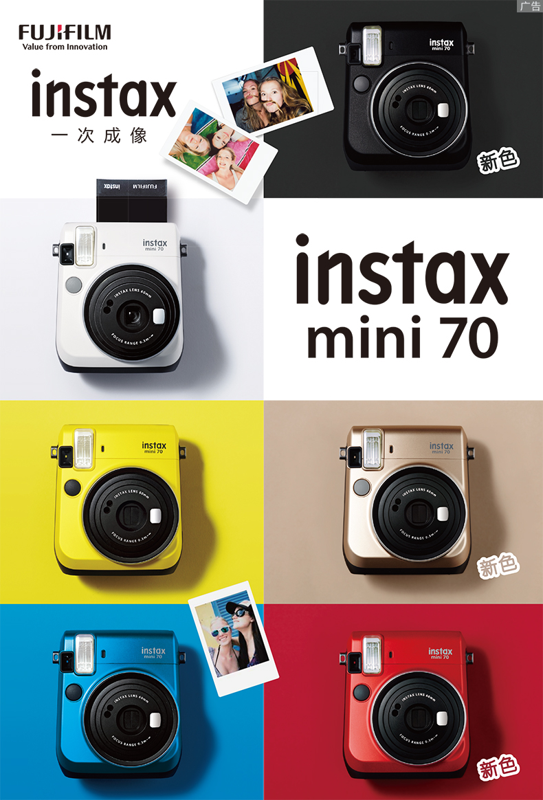 富士(FUJIFILM)INSTAX 拍立得 一次成像相机 MINI70相机 - 暖日黄