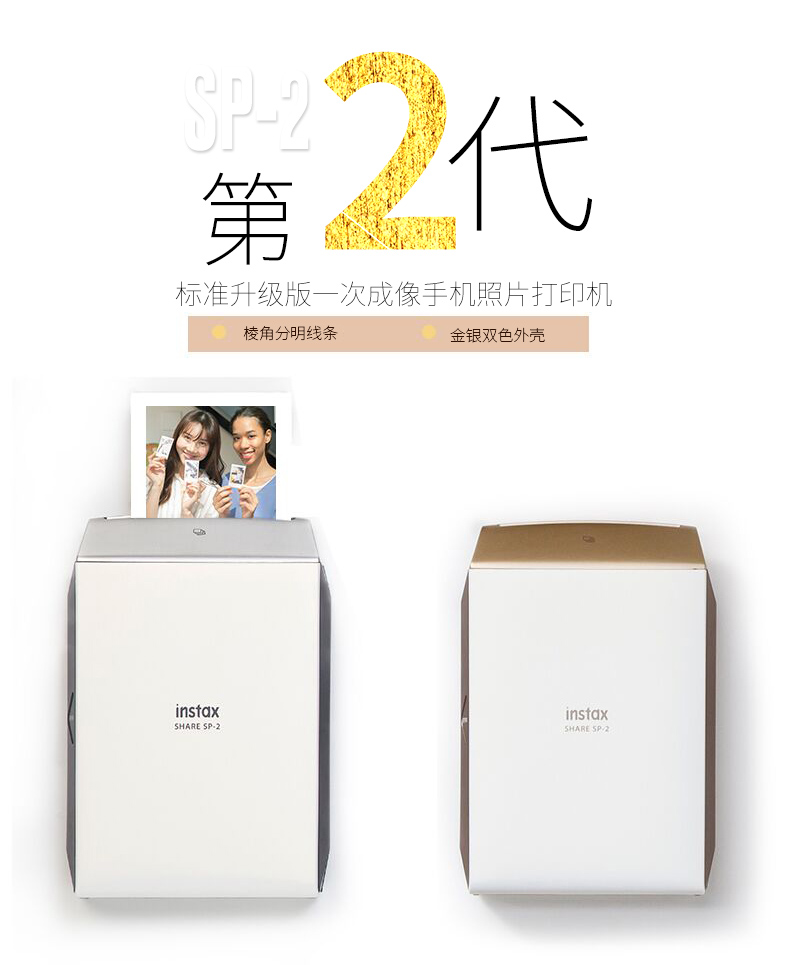 商品名称:富士(FUJIFILM)INSTAX趣奇俏SP-2 手机照片打印机 迷你口袋便携无线相片打印机 - 香槟金