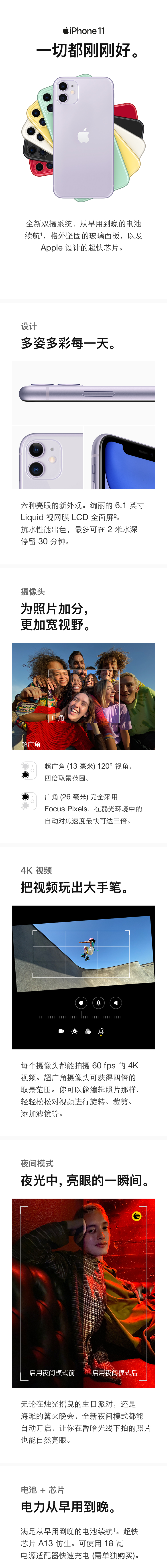 商品名称:Apple iPhone 11 128GB 紫色 移动联通电信4G手机 节日送礼