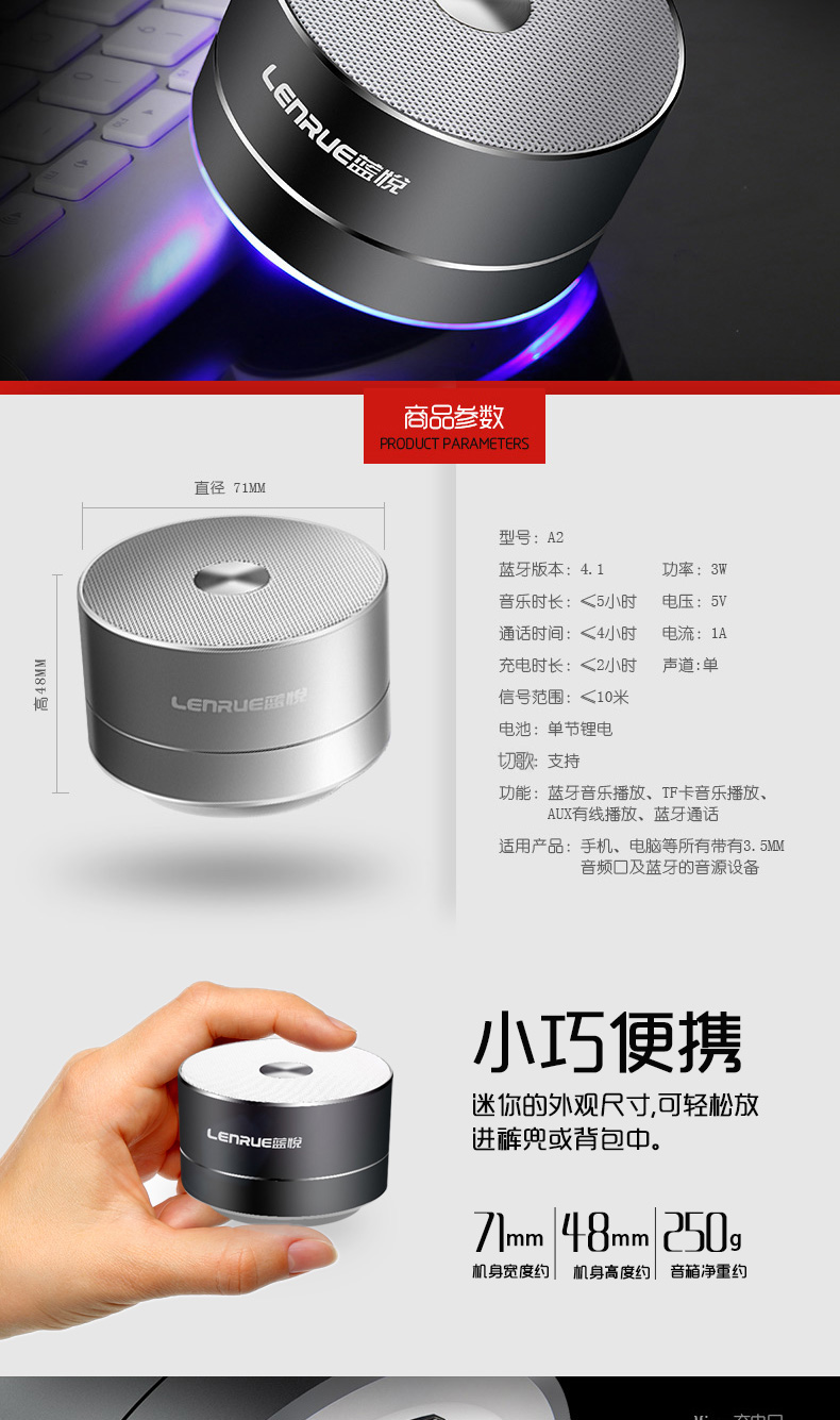 商品名称:经典无线蓝牙插卡音箱 车载手机电脑迷你音响 送客户