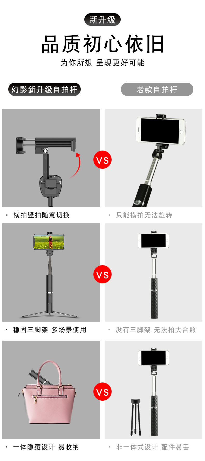 商品名称:隐藏式自拍杆 蓝牙拍照支架 锌合金自拍棒神器 女装店铺送什么礼品