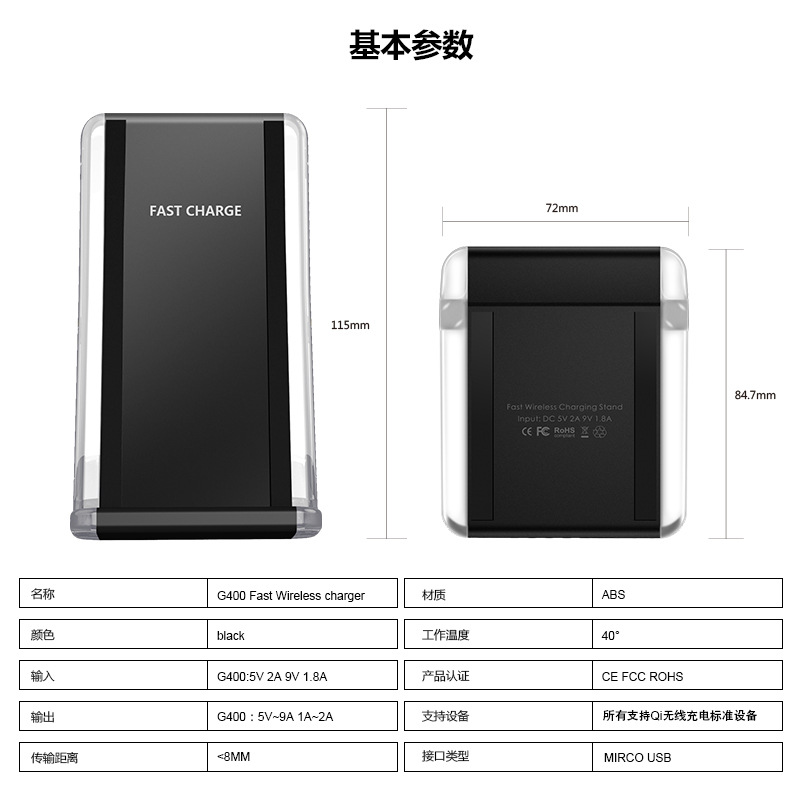 商品名称:银河G400 无线充快速充 立式款桌面支架 手机通用 商务礼品