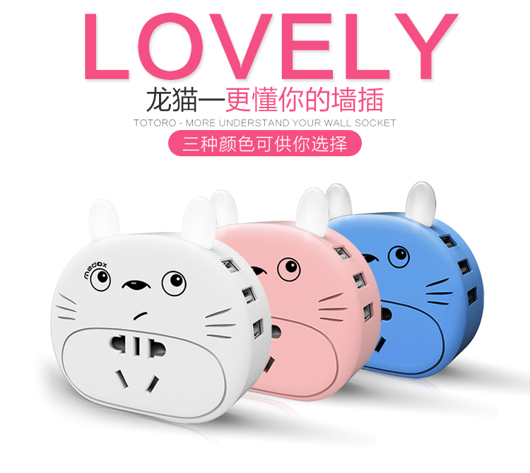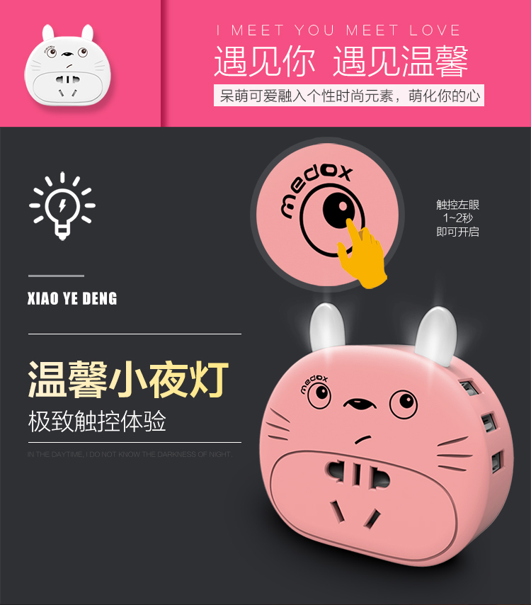 商品名称:创意带小夜灯插座转换器插头 多功能USB电源插线板 小巧便携卡通墙插 家居小礼品