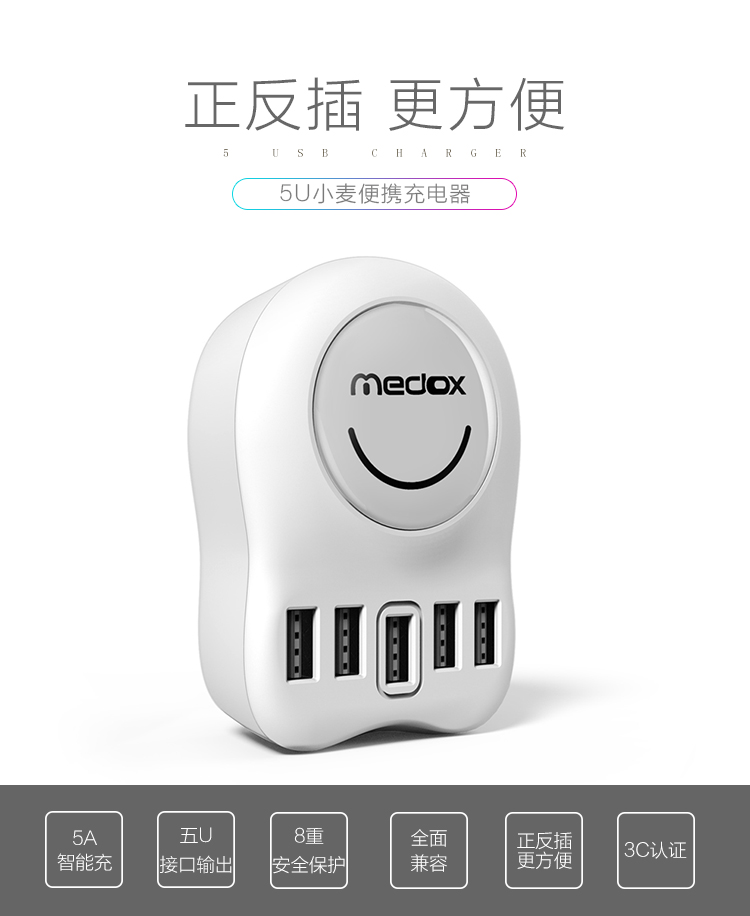 商品名称:创意便携多口5A快充插头 安卓苹果手机通用USB充电器 多功能正反插充电器 创意家居礼品