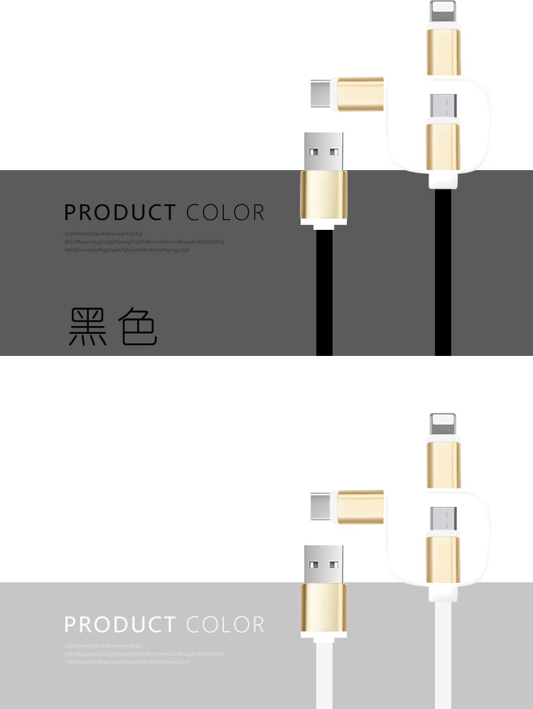 三合一土豪金数据线 安卓苹果type-c数据线 数码促销礼品