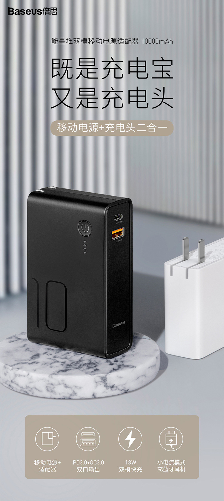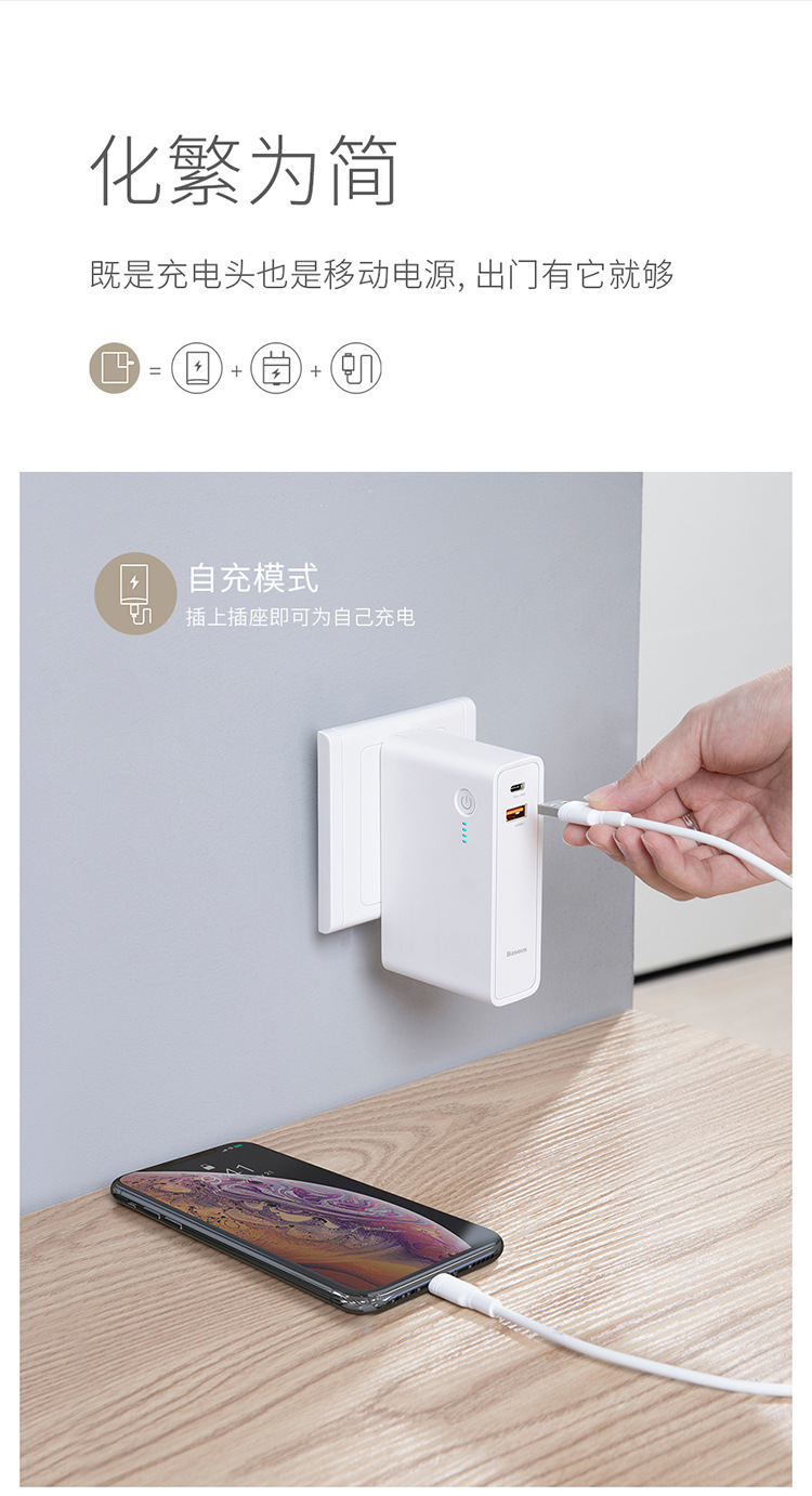 商品名称:Baseus 创意便携移动电源10000mAh充电宝充电器二合一 旅行礼品