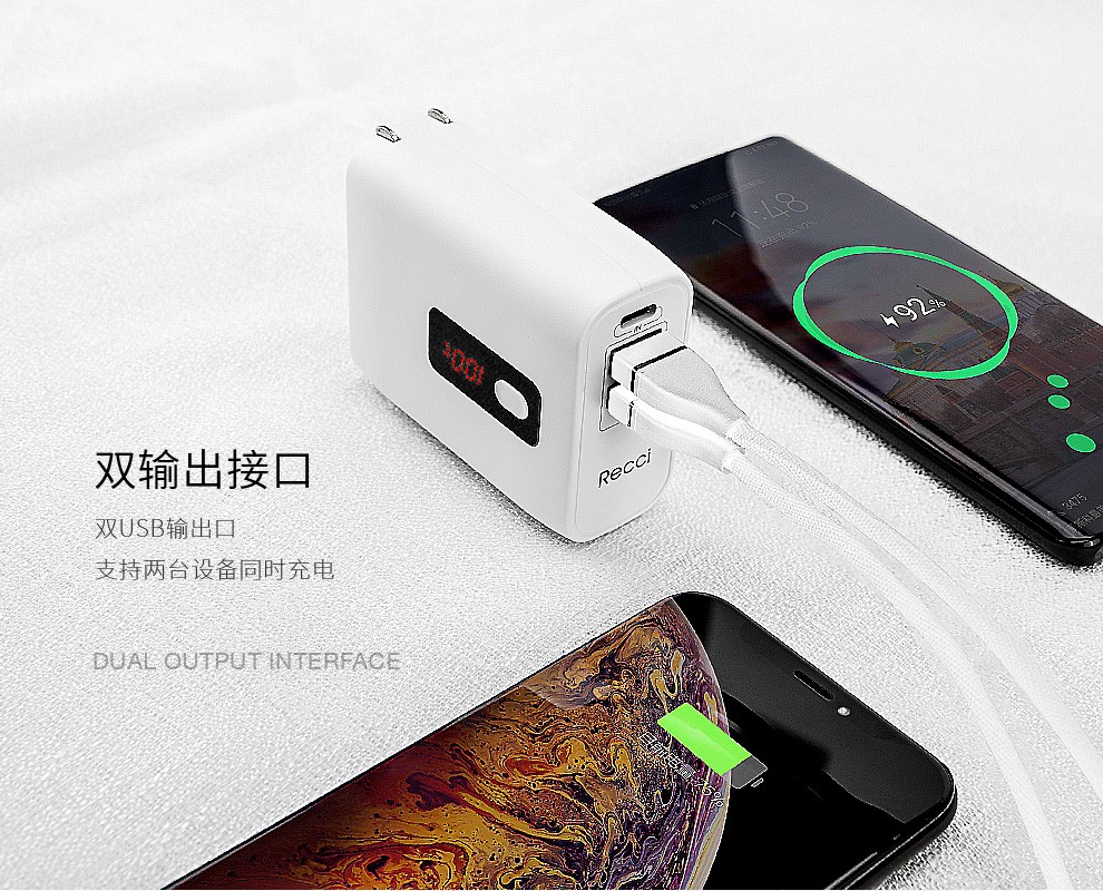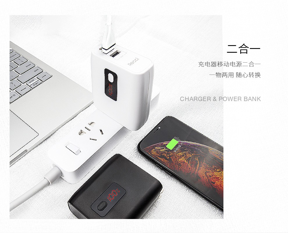 商品名称:Recci 二合一充电器移动电源 5000毫安大容量双USB口输出2.1A 活动纪念礼品