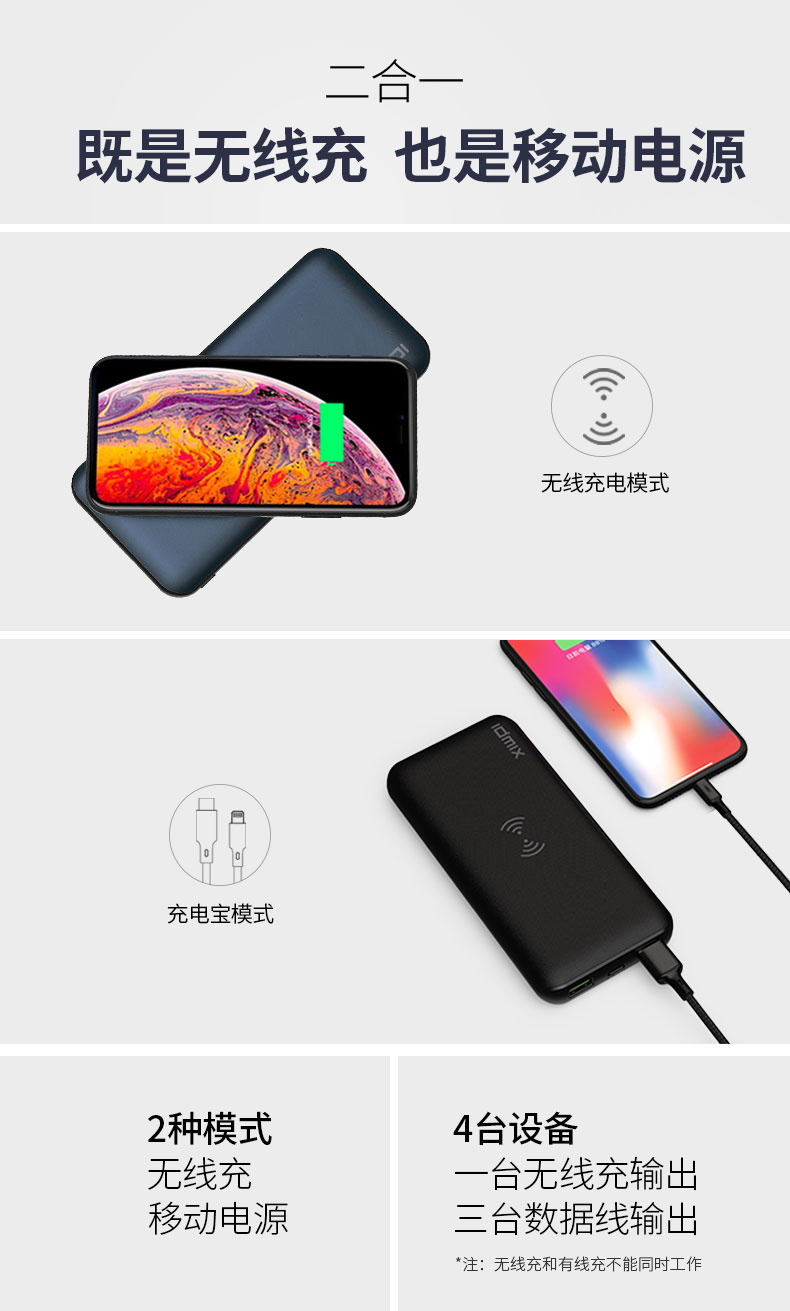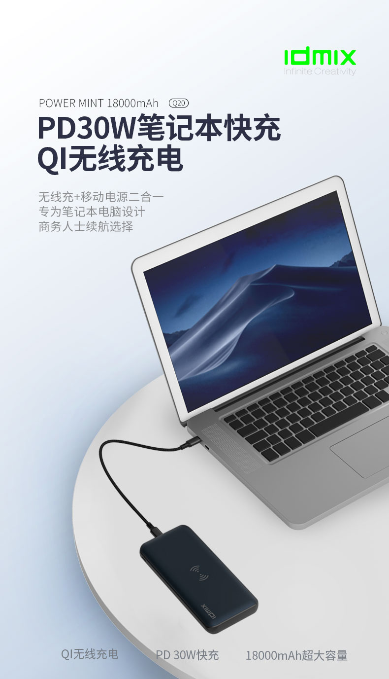 IDMIX(大麦)18000毫安 30W笔记本电脑充电宝 PD30W双向快充+无线充移动电源300左右的奖品 比赛奖品