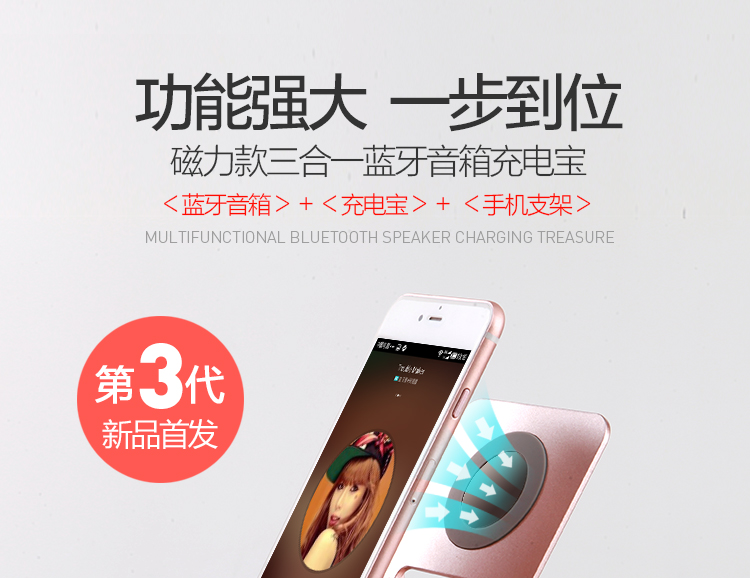 商品名称:第三代三合一手机支架充电宝音箱 大容量多功能移动电源10000毫安 磁吸蓝牙音响