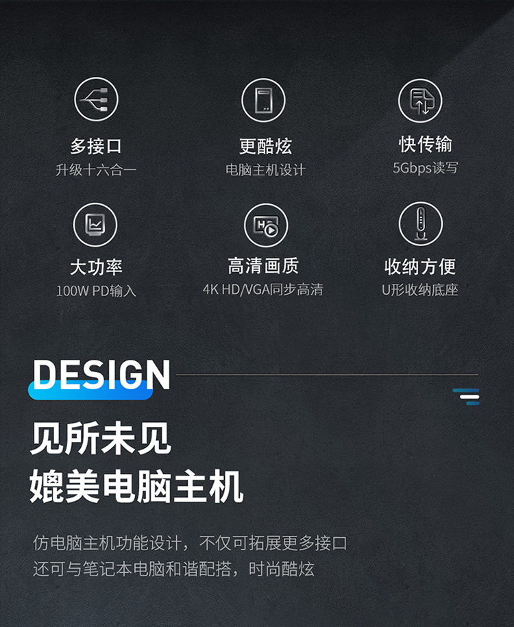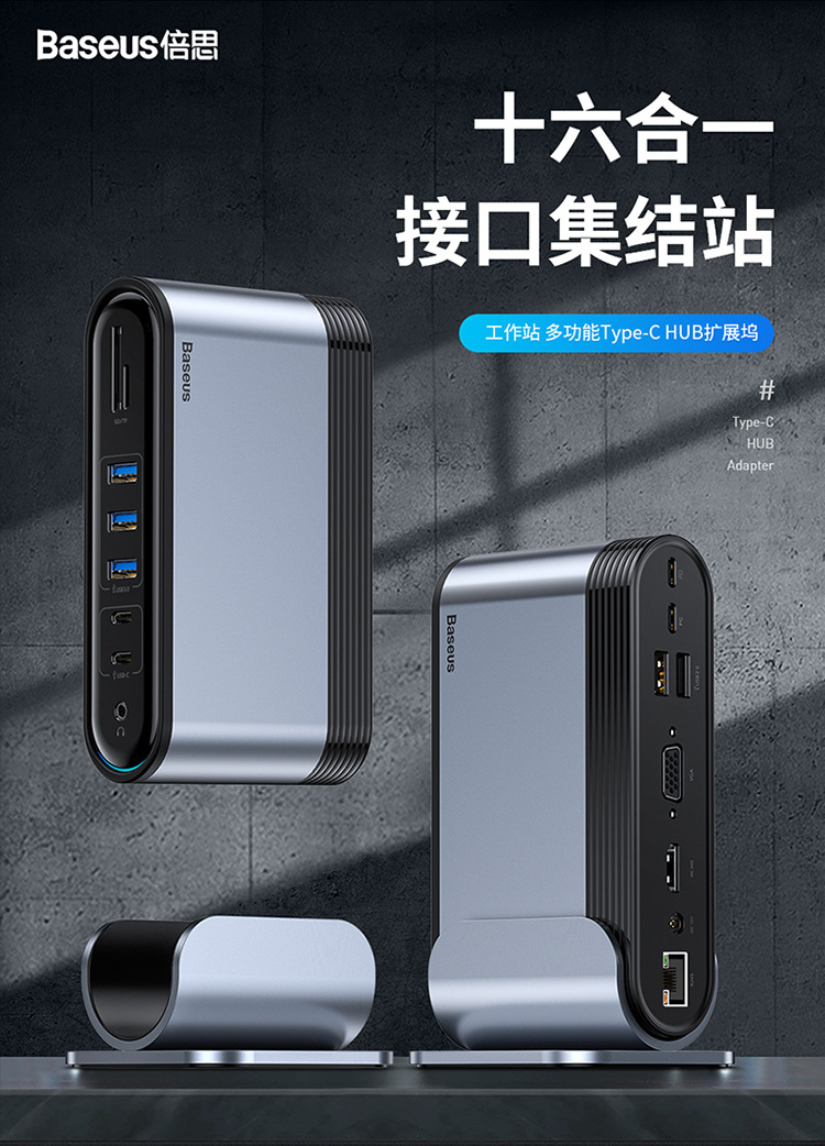 商品名称:多功能Type-C-HUB分线器十六合一扩展坞 办公用品定制