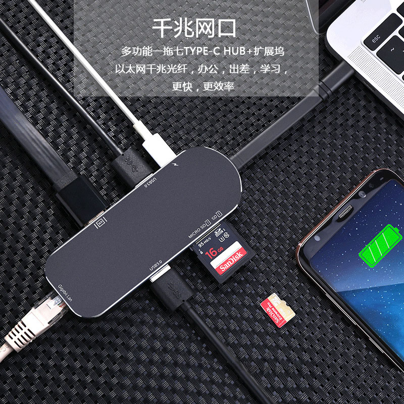 6合1type-c hub转换器 USB-C充电SD/TF读卡