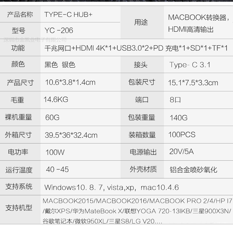 商品名称:6合1type-c hub转换器 USB-C充电SD/TF读卡