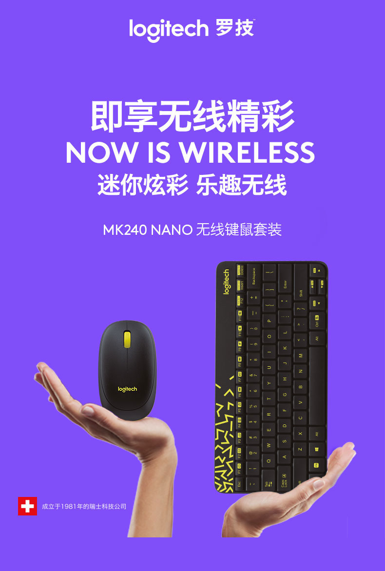 罗技(Logitech)无线键鼠套装MK240 时尚Nano键盘鼠标套装(带2.4G无线接收器) 实用礼品赠送