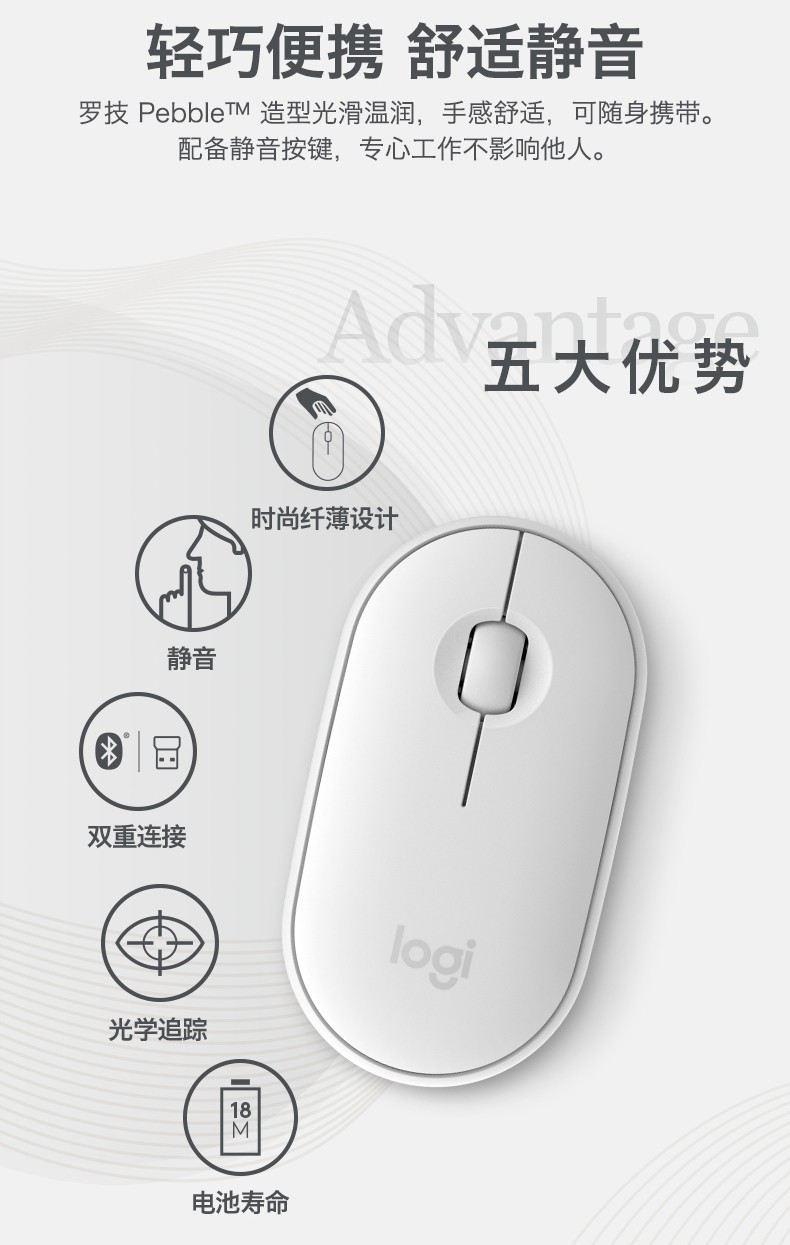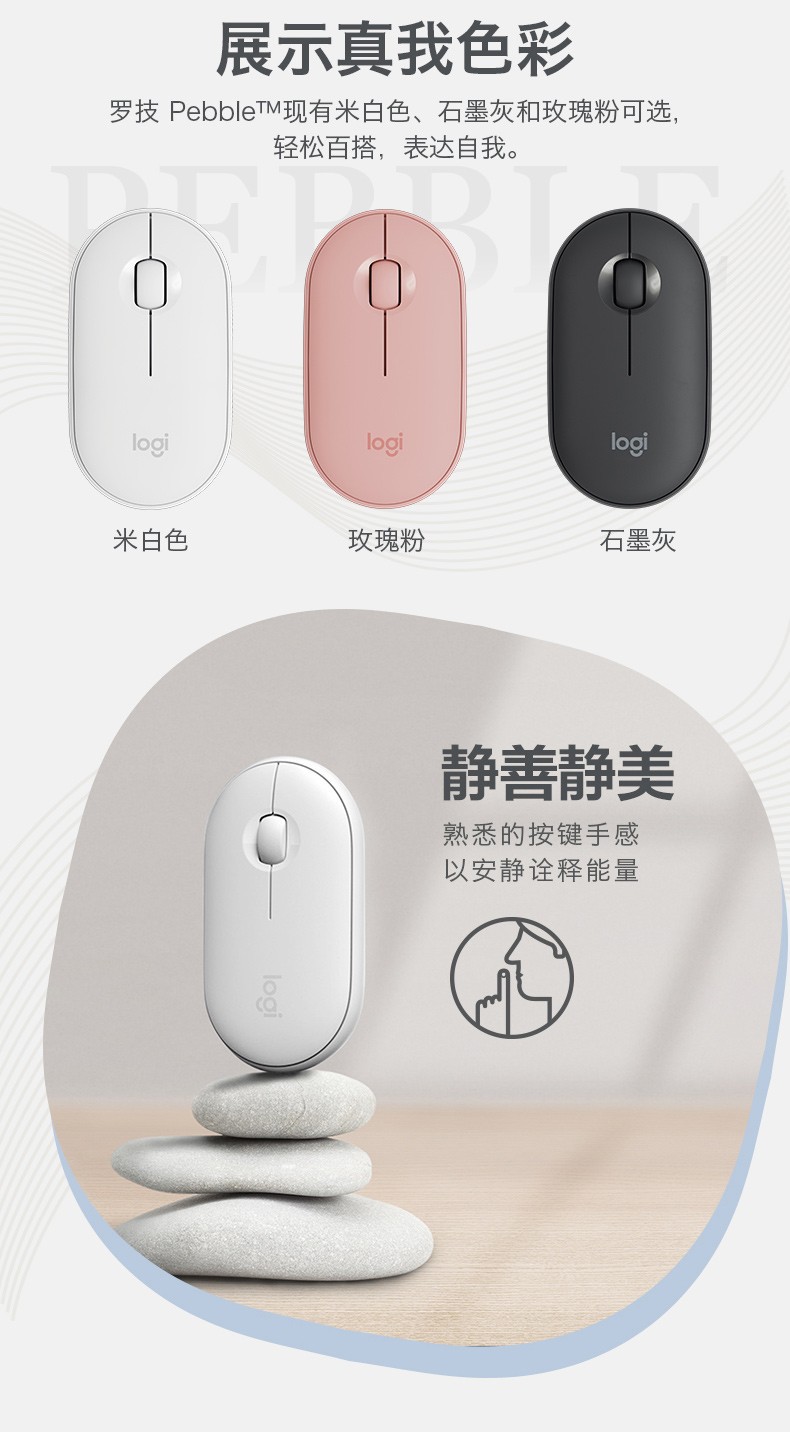 商品名称:Logitech/罗技 鹅卵石Pebble双模静音蓝牙无线鼠标 优秀员工奖励什么礼品