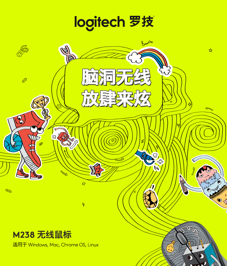 商品名称:Logitech/罗技 板鞋头 彩绘涂鸦脑洞系列无线鼠标 高科技创意礼品