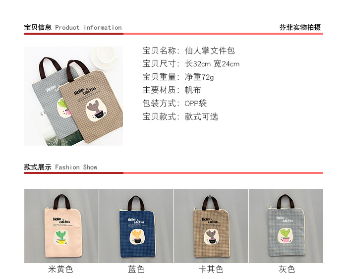 商品名称:小清新仙人掌牛津帆布袋 手提拉链收纳包 员工礼品