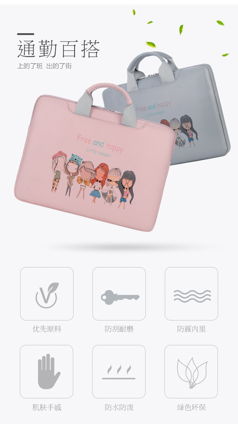 商品名称:卡通PU笔记本电脑包收纳包两件套 单肩手提电脑包 手提电脑内胆包 可定制图案 商务礼品定做