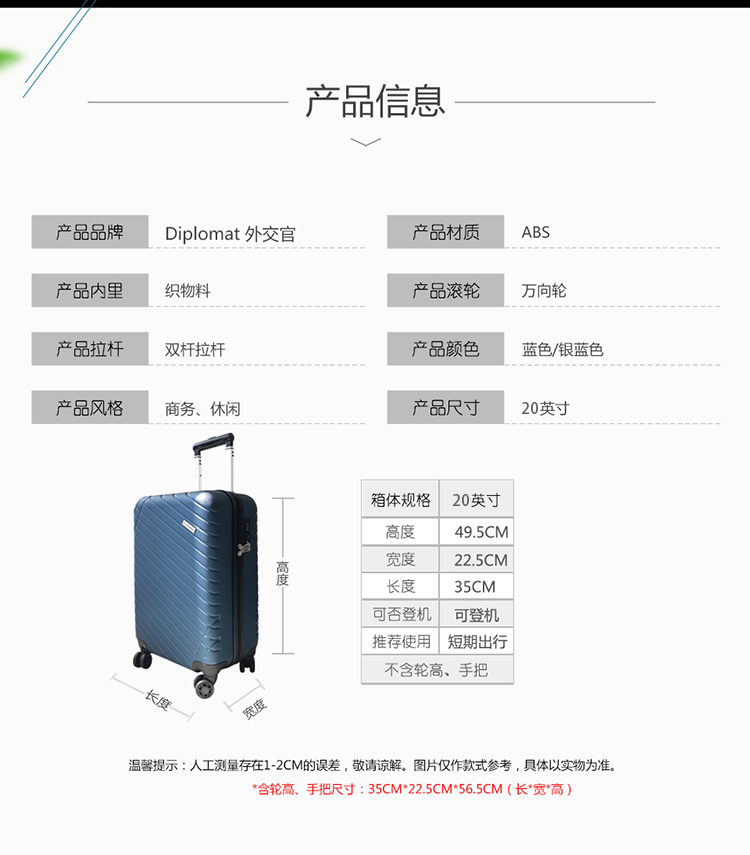 商品名称:外交官(Diplomat)商务休闲拉杆箱 时尚几何设计行李箱 20英寸拉杆箱 商务礼品