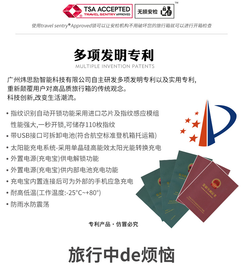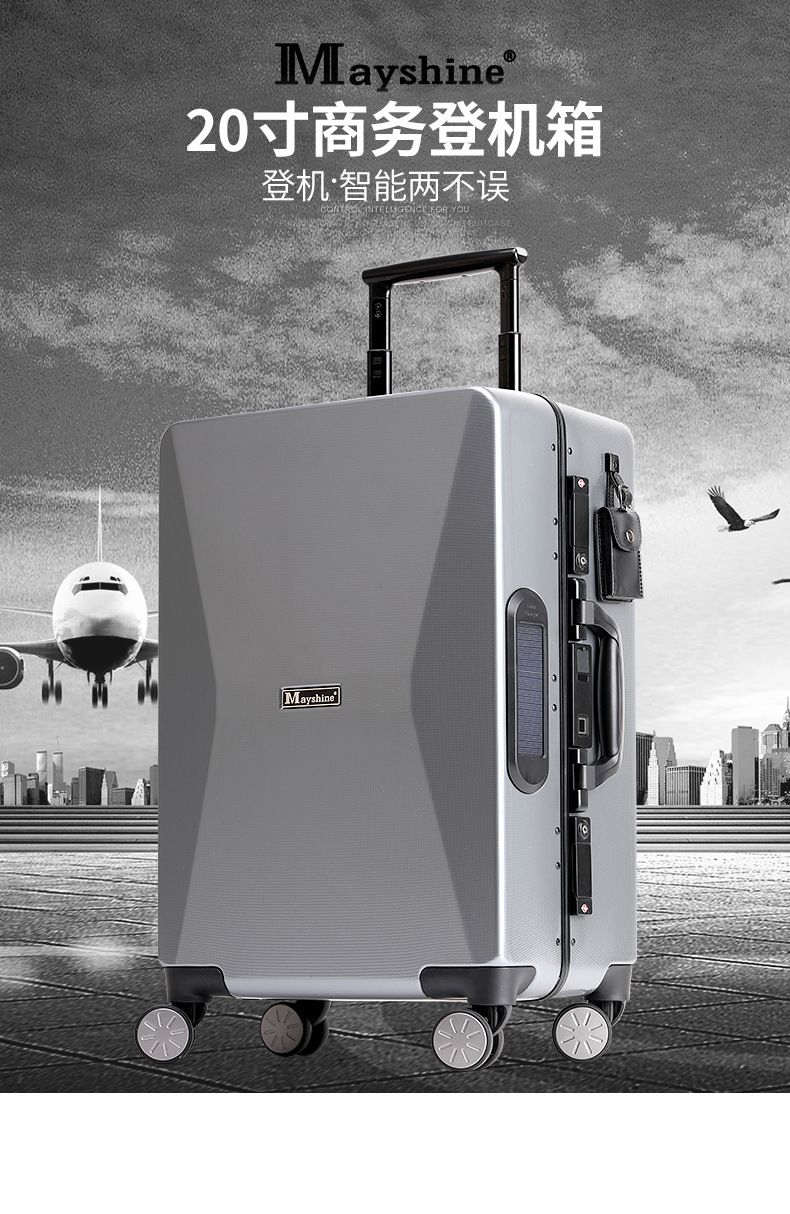 商品名称:指纹解锁拉杆箱登机智能两不误黑科技创新太阳能手机充电高端商务旅行智能 出差商务礼品