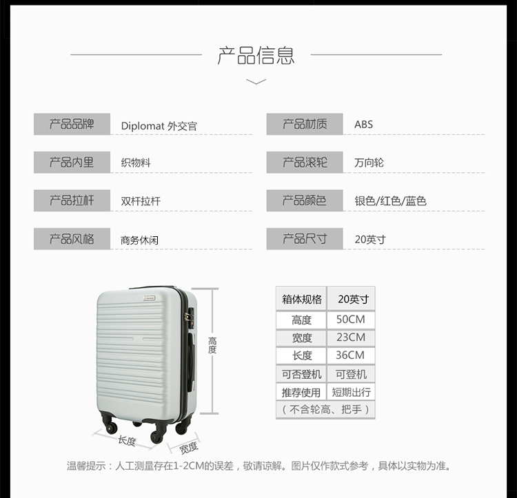 商品名称:外交官(Diplomat)商务休闲拉杆箱 20寸登机箱 行李箱礼品