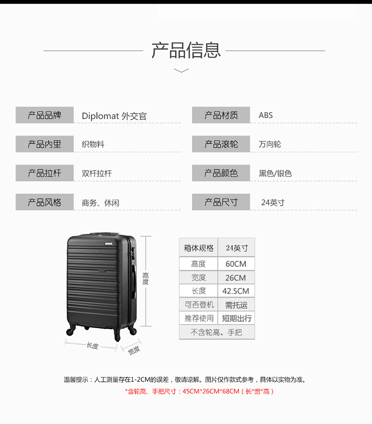 商品名称:外交官(Diplomat)24寸时尚拉杆箱 商务商务旅行箱 差旅必备礼赠品