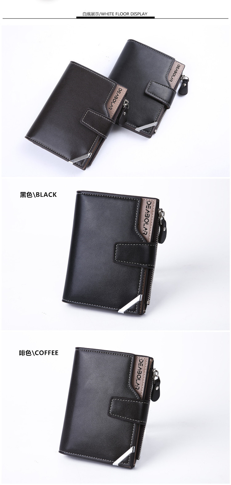 商品名称:欧美风范男士中长款钱包多功能多卡位三折皮夹 周年纪念品