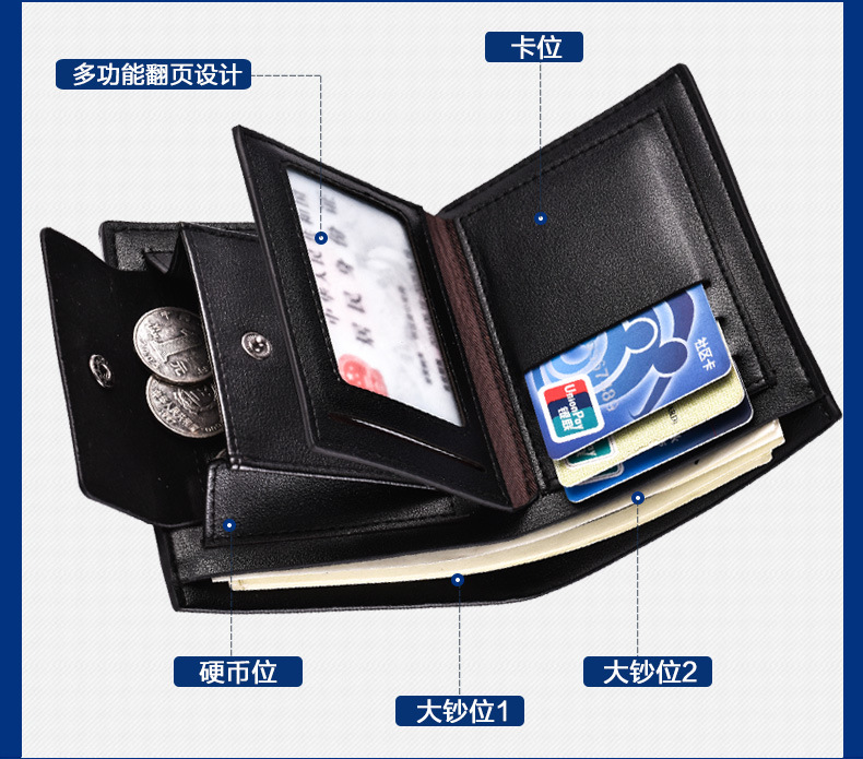 商品名称:男士钱包短款韩版多卡位搭扣零钱包三折皮钱夹 宣传活动礼品