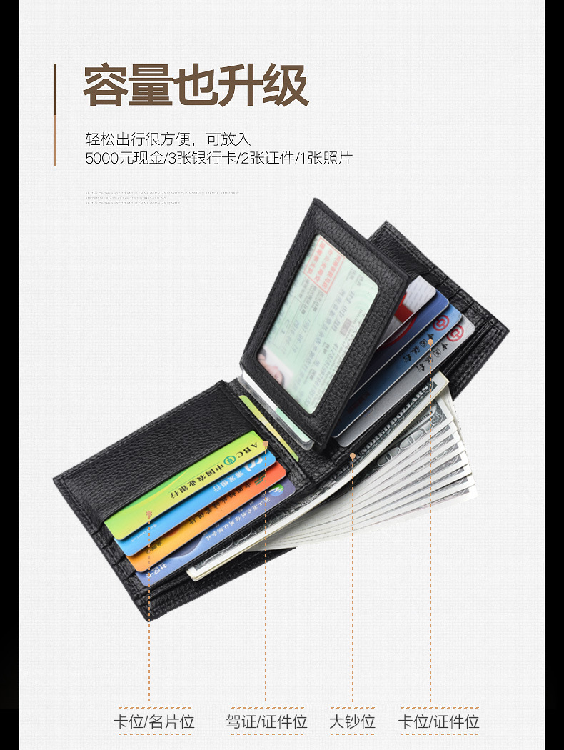 商品名称:男士短款钱包商务休闲驾驶证多功能大容量短钱夹 促销礼品 公司