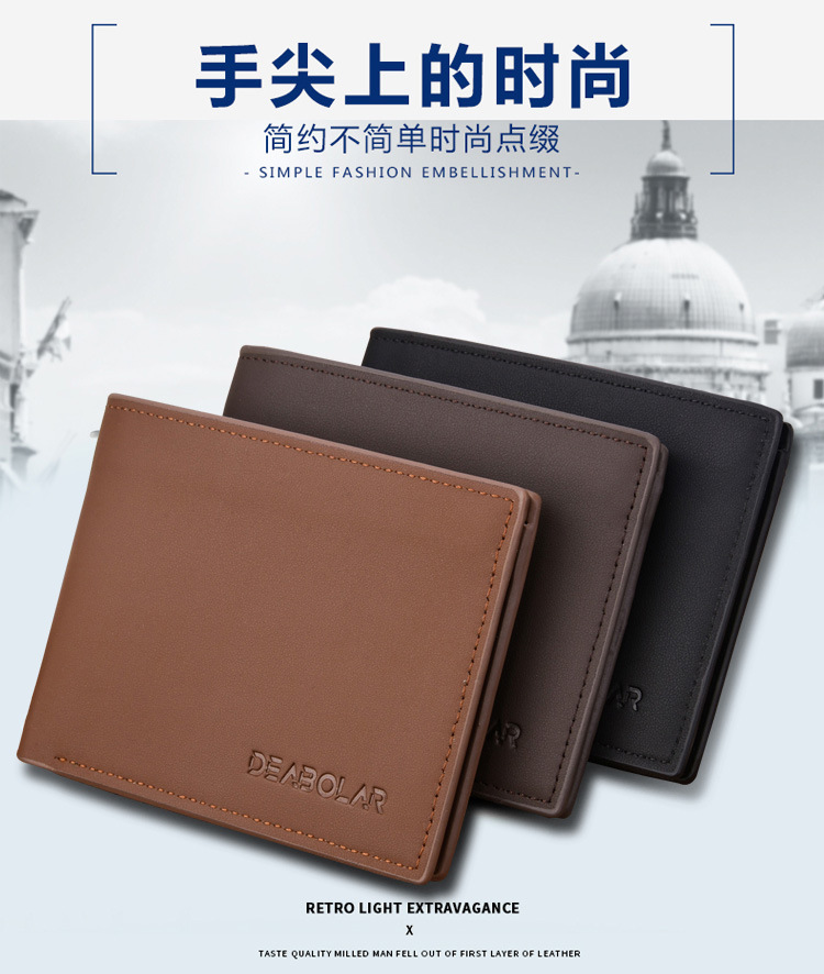 商品名称:男士短款钱包时尚光面软皮横款多功能钱夹 部门奖品