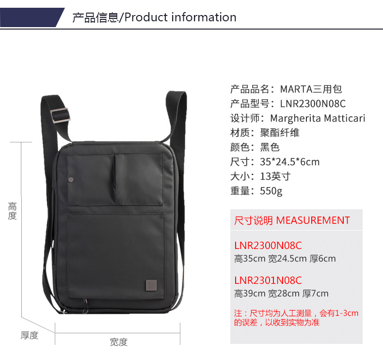 商品名称:法国乐上(LEXON)多功能背包 简约时尚多用包 13寸/15寸商务公文包 商务礼品