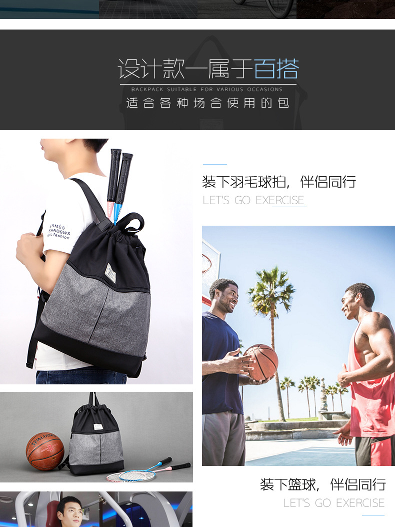 商品名称:双肩包男束口瑜珈包 简约休闲帆布篮球包背包 篮球比赛奖品 线下礼品有哪些