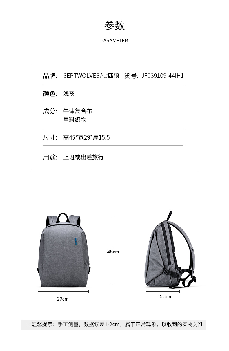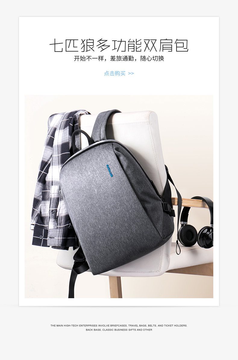 商品名称:七匹狼(Septwolves)欧美时尚方形双肩包 大容量电脑包 创意商务旅行礼品
