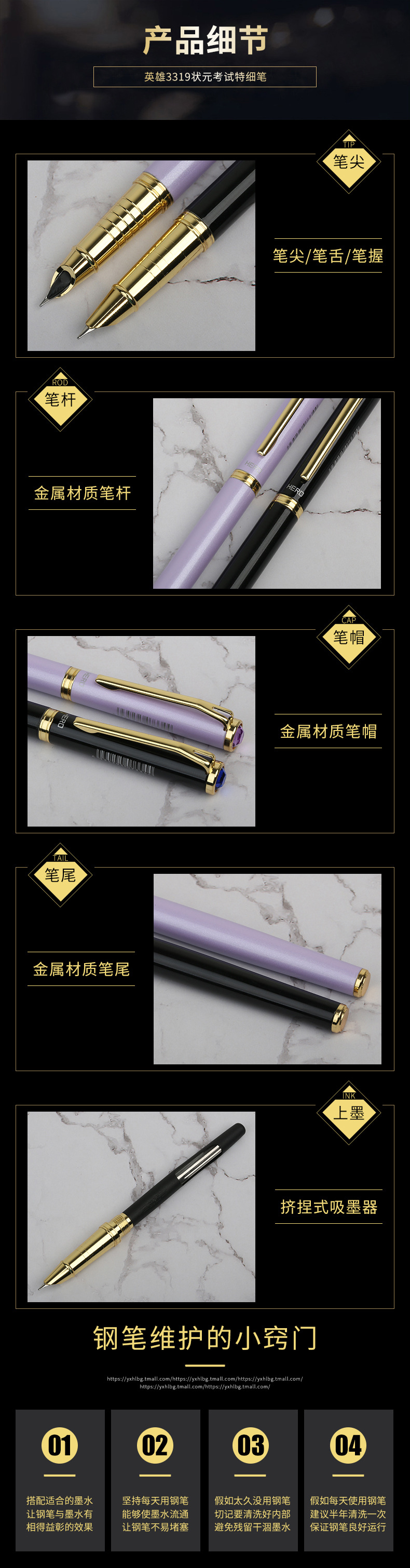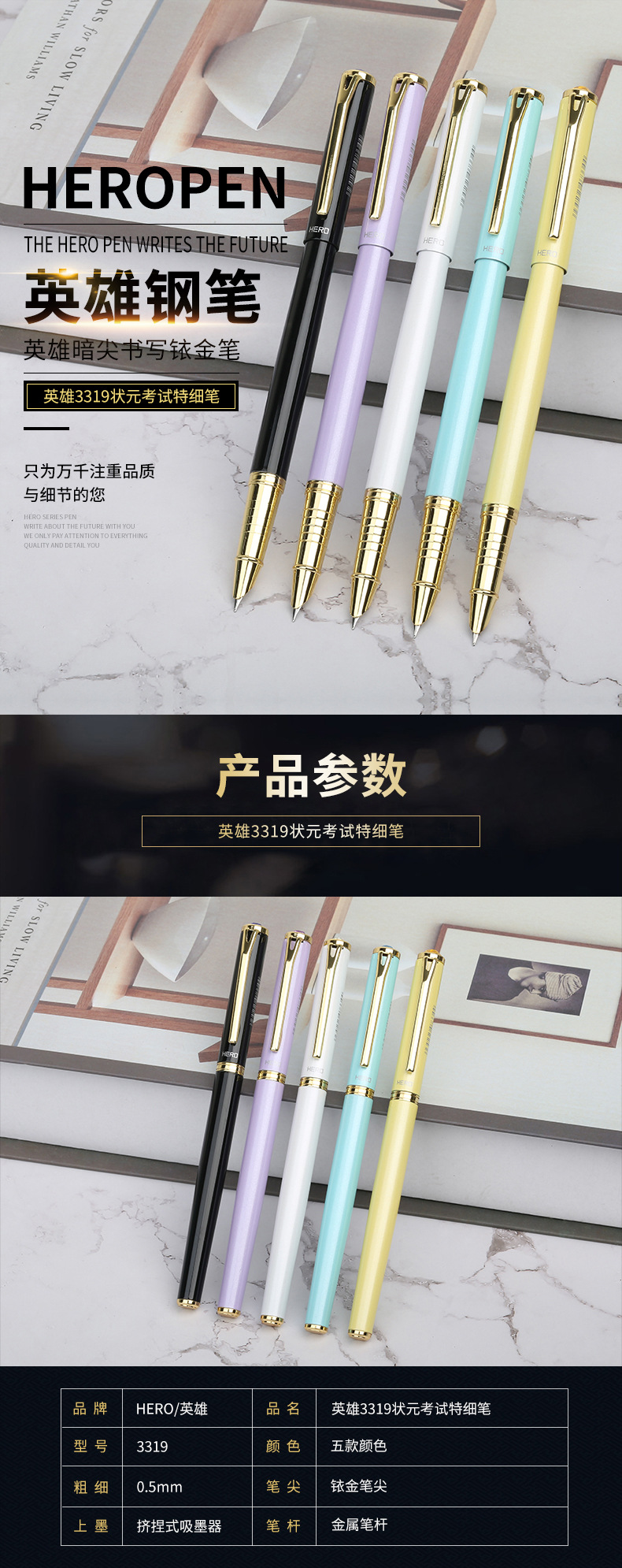 商品名称:英雄(Hero) 状元暗尖书写铱金笔 挤捏式吸墨签字笔 创意商务礼品