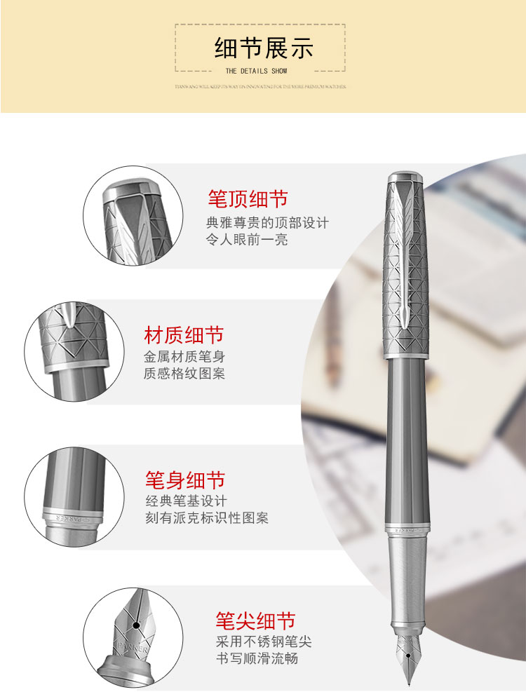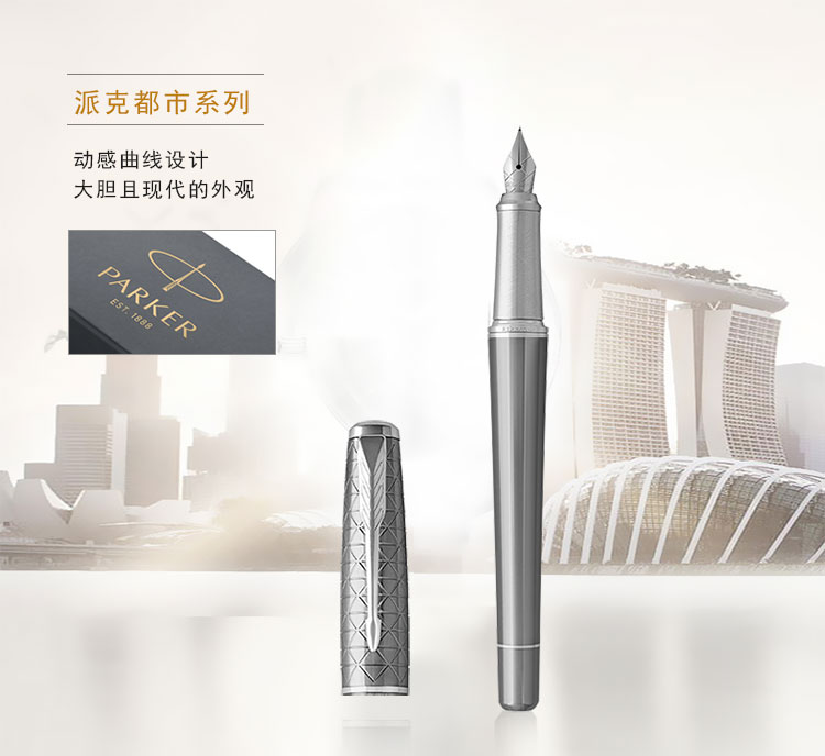 派克PARKER 豪华都市简影白夹墨水笔 钢笔 中秋博饼礼品方案