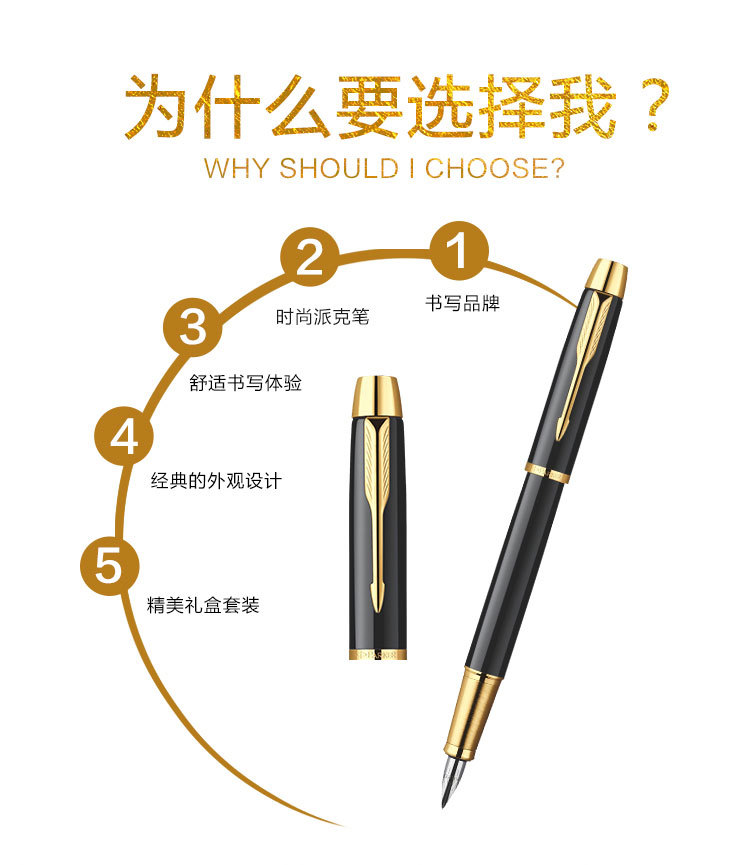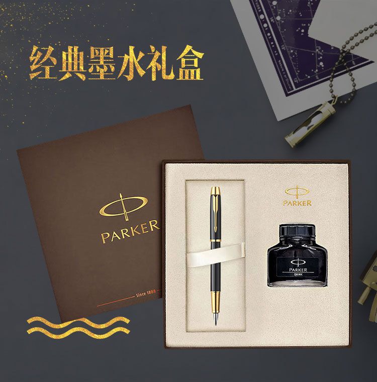 商品名称:派克PARKER IM纯黑丽雅金夹钢笔墨水礼盒 高档商务钢笔礼盒套装