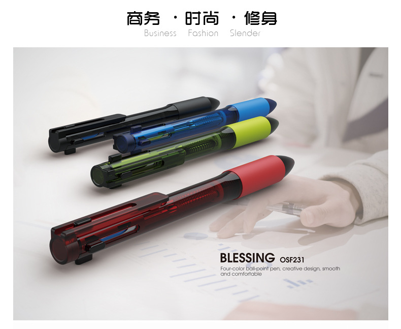 商品名称:【四喜】创意透明按动广告笔 四色笔 多色圆珠笔定制 多功能原子笔(231)