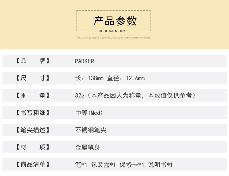 商品名称:派克PARKER 豪华都市珍珠白格子纹宝珠笔 签字笔