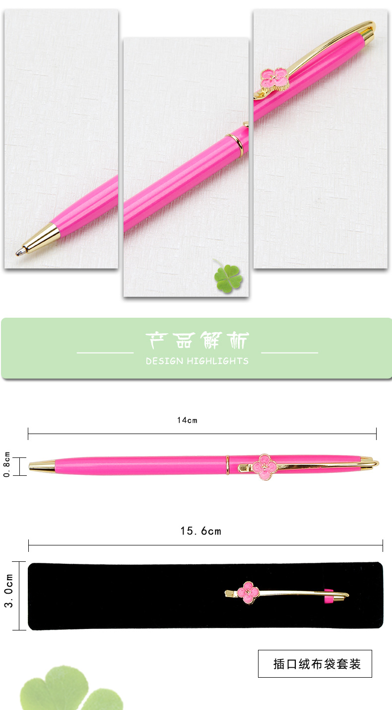 商品名称:四叶草圆珠笔 时尚旋动金属签字笔 创意笔定制