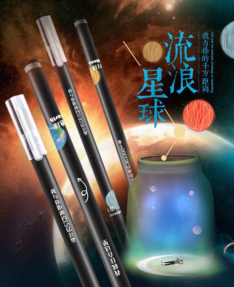 流浪星球中性笔盒装碳黑0.5mm全针管创意黑笔SCM至尚创美 盒装礼品水笔 礼品笔定制