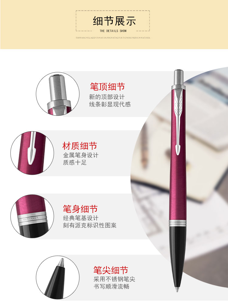 商品名称:派克PARKER 经典都市粉红白夹原子笔 女性商务圆珠笔
