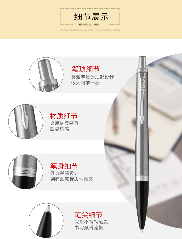 商品名称:派克PARKER 经典都市金属银白夹原子笔 银色商务圆珠笔