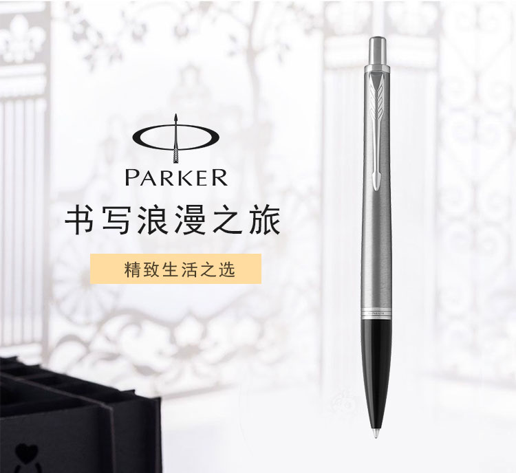 派克PARKER 经典都市金属银白夹原子笔 银色商务圆珠笔