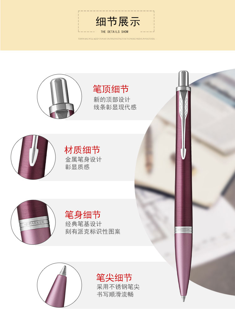 商品名称:派克PARKER 豪华都市瑰丽人生原子笔 紫红色商务圆珠笔