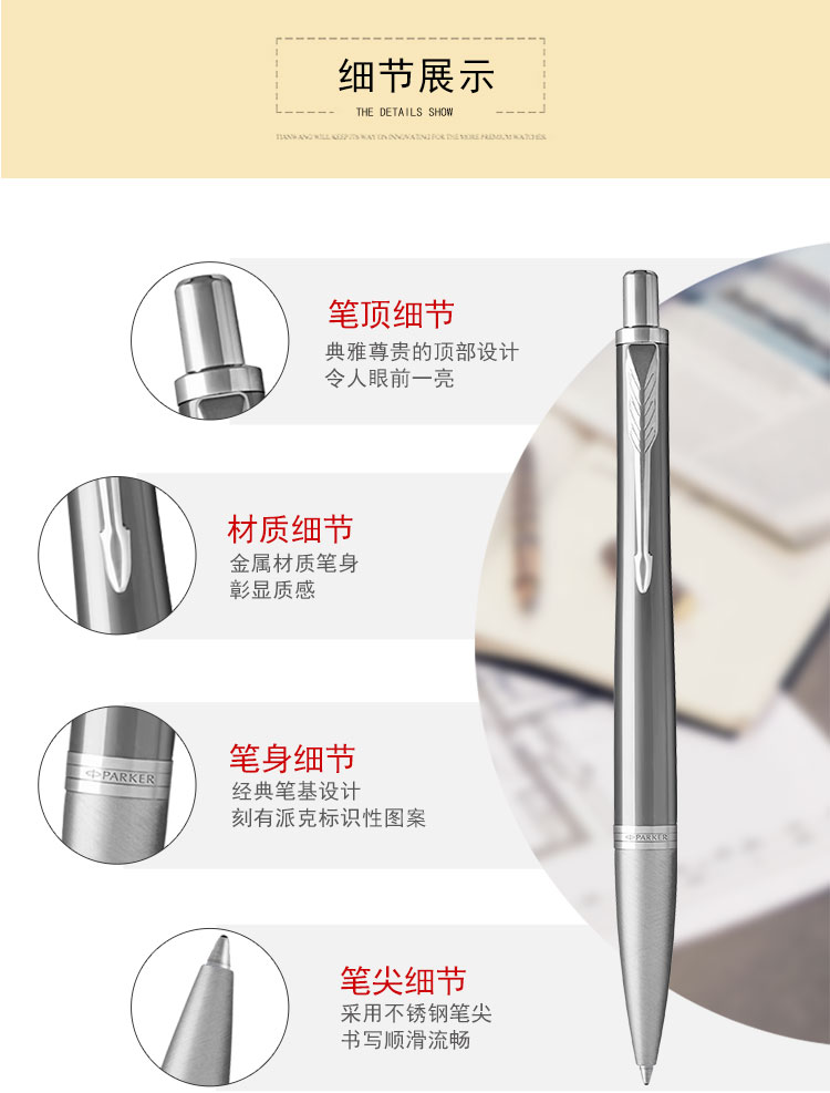 商品名称:派克PARKER 豪华都市简影白夹原子笔 圆珠笔 企业定制礼品