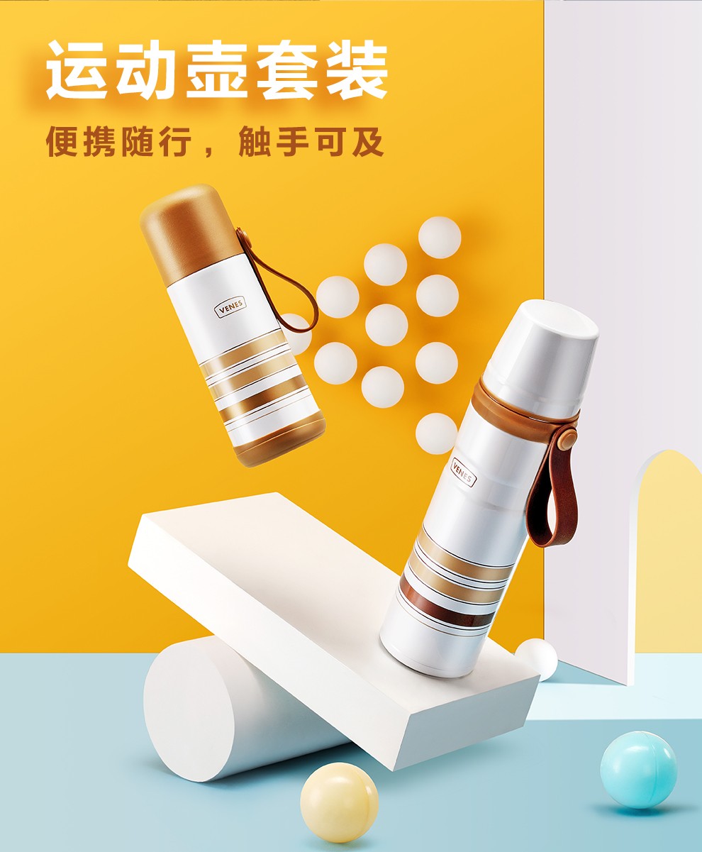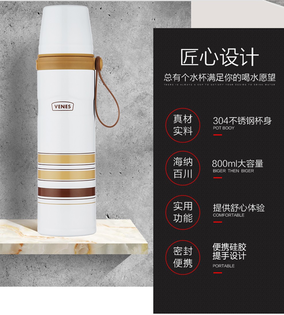 商品名称:菲驰(VENES)保温壶304不锈钢保温杯运动壶套装350ML+800ML 纪念会议礼品