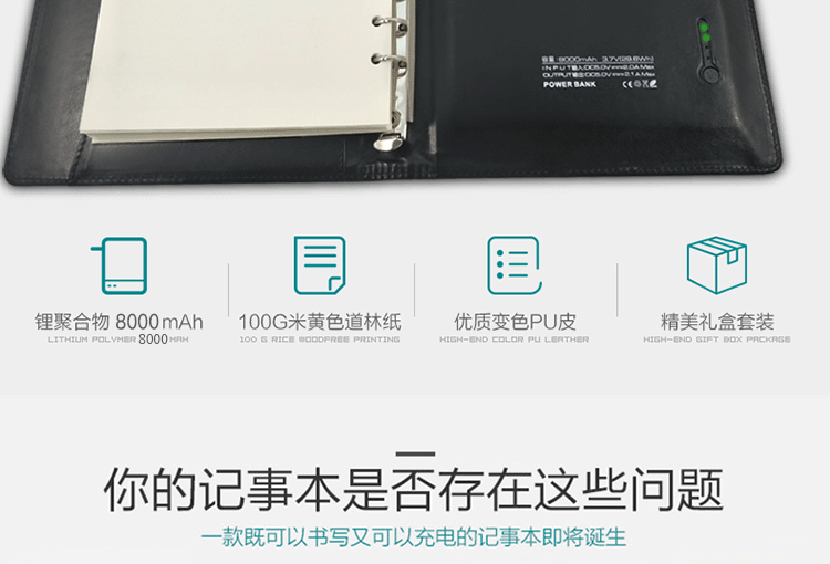 商品名称:商务笔记本移动电源礼盒装 PU皮笔记本 创意年会礼品